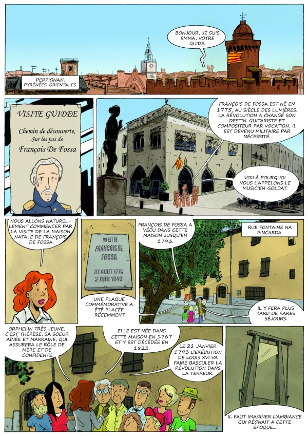 Afin de faire connaître cet illustre militaire-compositeur-guitariste catalan qu’était François de Fossa (1775-1849), l’association Les Amis de François de Fossa vient d’éditer une bande dessinée retraçant l’œuvre et la vie de l’illustre catalan. Le format choisi, la « Bande dessinée », doit permettre à tous, enfants, adolescents ou adultes et seniors, de découvrir une part importante de l’histoire de notre région, au travers du parcours de ce compositeur né à Perpignan en 1775 et mort à Paris en 1849.